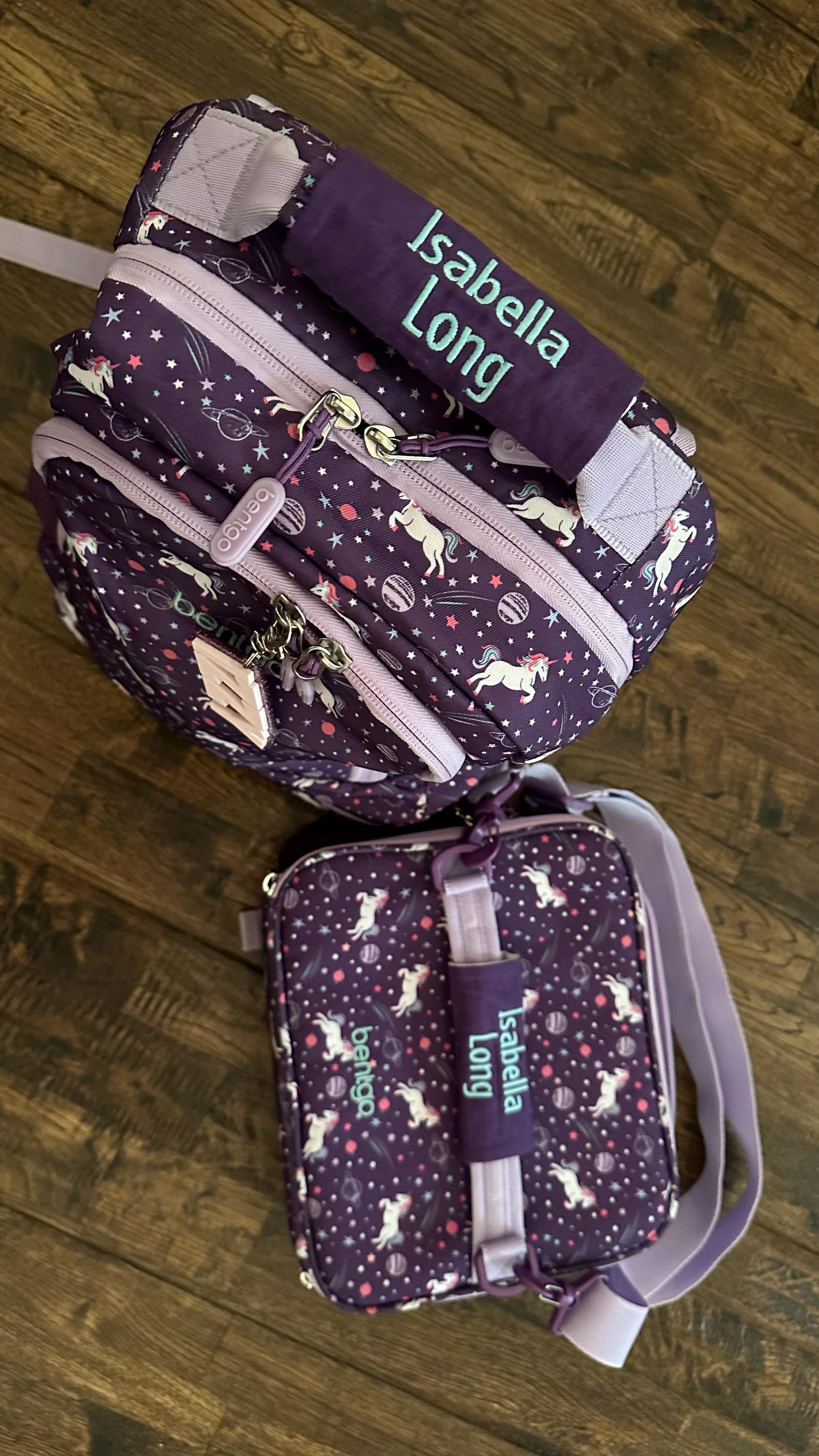 I use these to label my child’s backpack, nap mat, lunchbox, etc! I love that I can get them to match her backpack set each year and they are washable! It’s much easier to wash those than it is to try to clean the handles on the backpack or lunchbox.