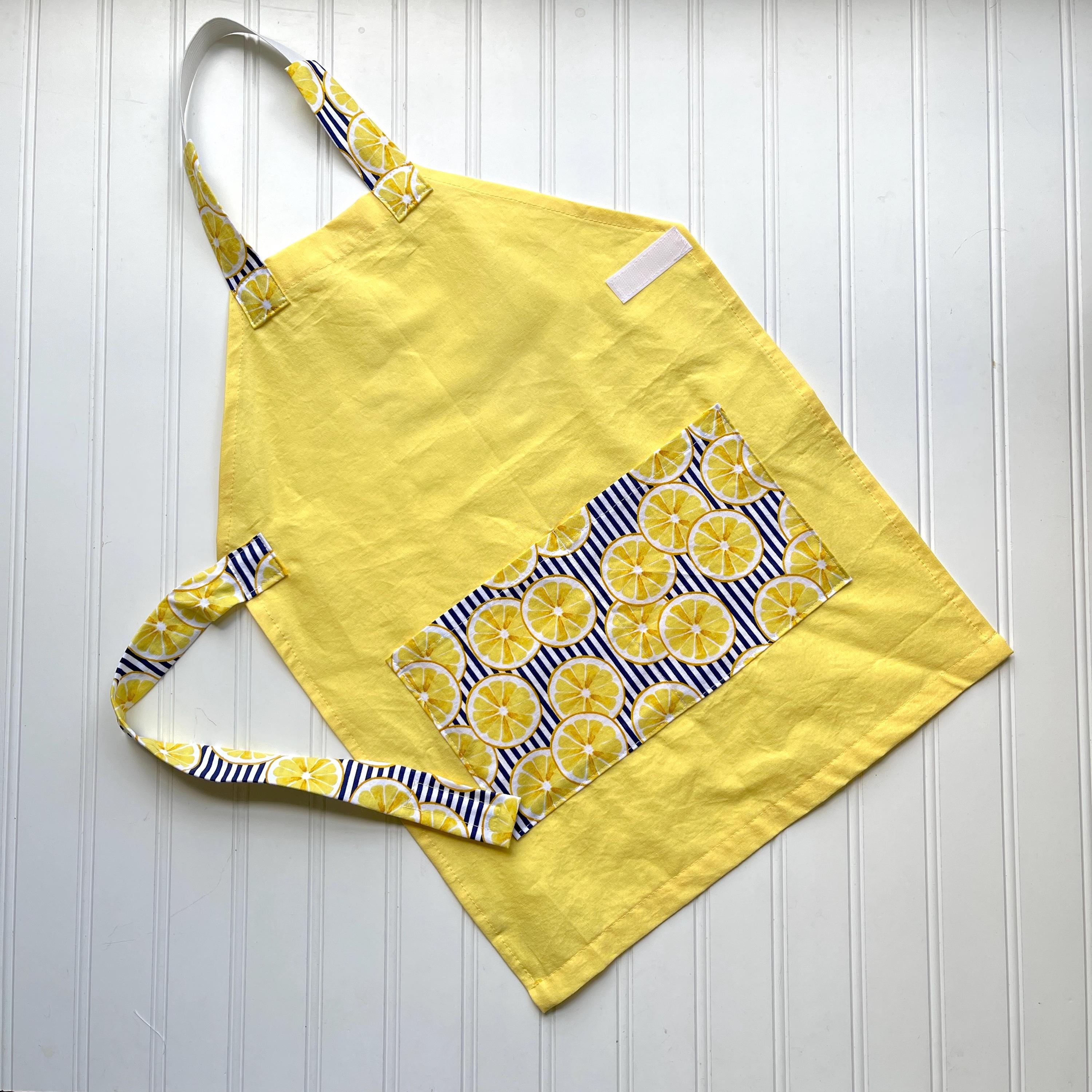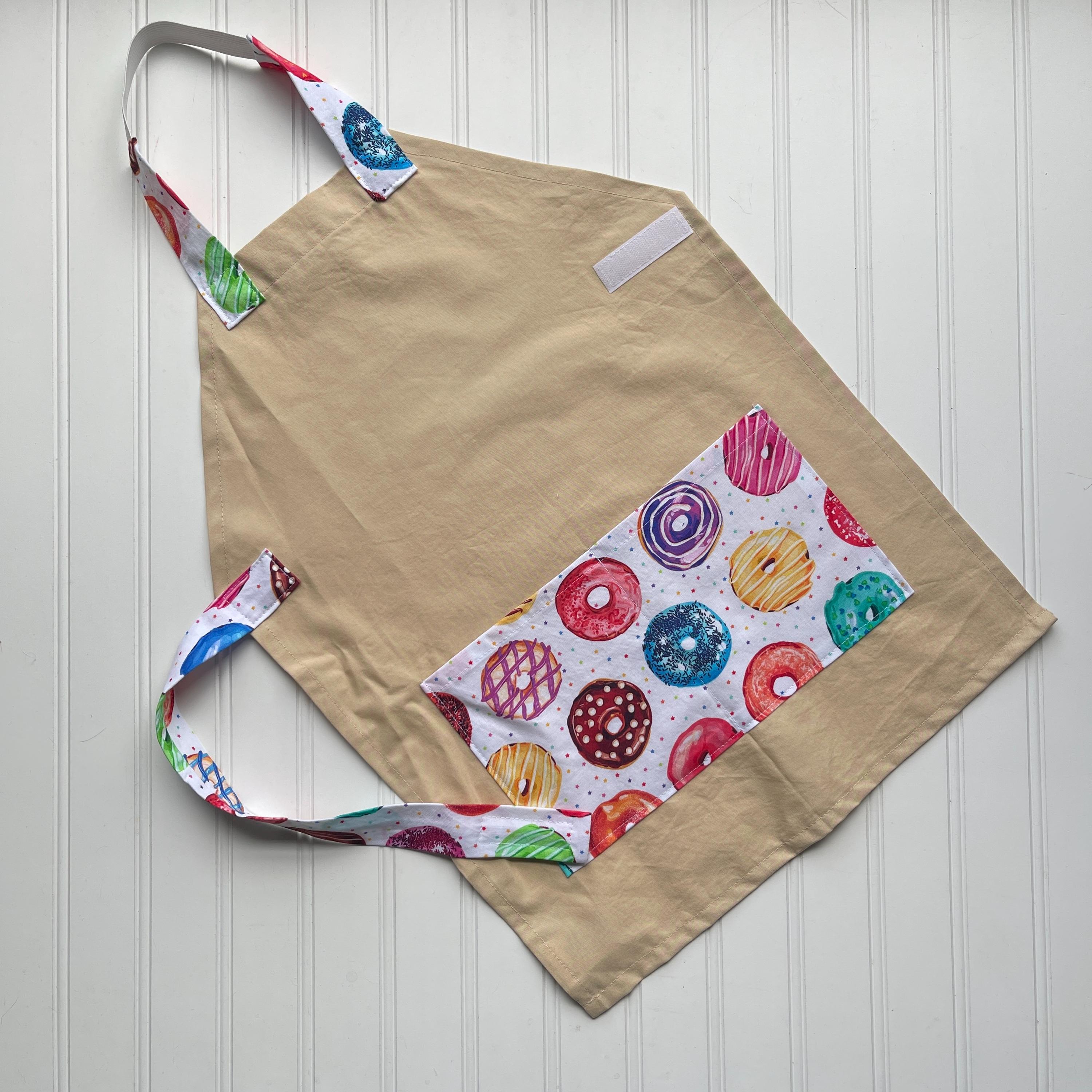 Our handmade aprons are designed with moms and kids in mind. Your little one can put his apron on "all by himself" and come be a helper in the kitchen. Perfect for baking, craft projects and pretend play. This apron will be a huge hit as a birthday, or Christmas surprise.