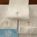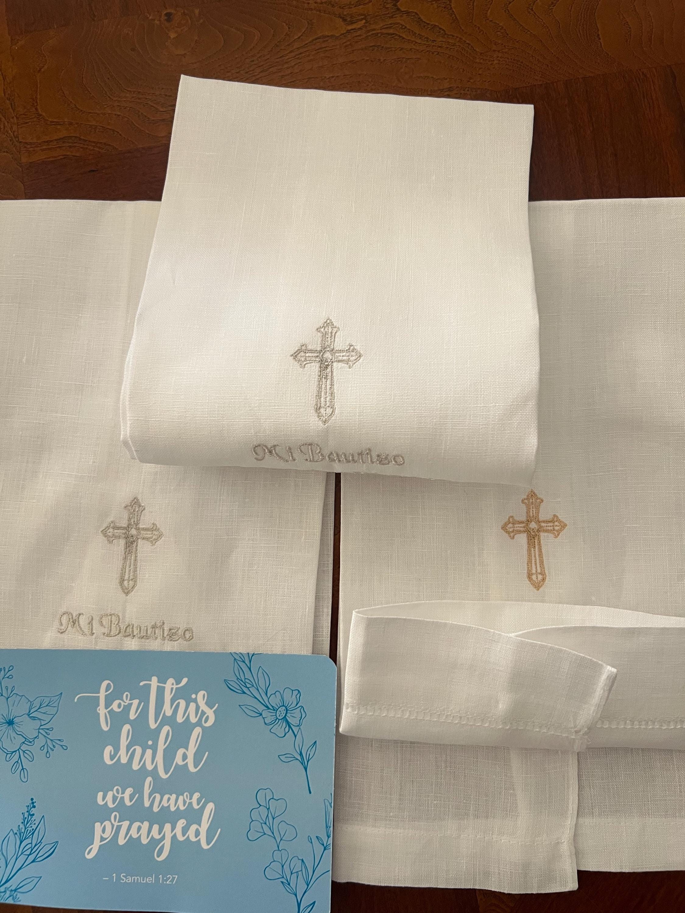 This heirloom-quality towel is made of crisp white linen. Price includes custom embroidery of childβs first and middle name and date of baptism plus cross of your choice. Towel measures approximately 14" x 22".